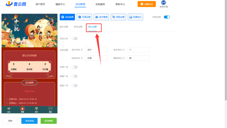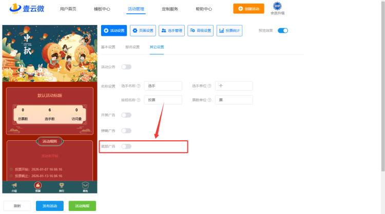 开启【底部广告】,上传广告图片,还可设置跳转链接。