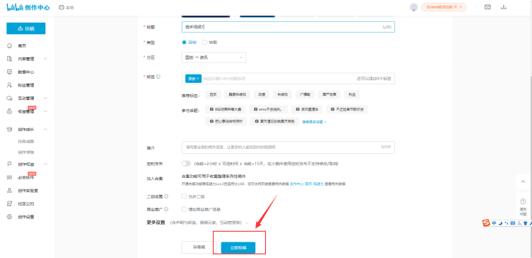 随意填写内容后,点击【立即投稿】