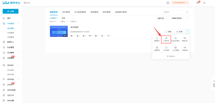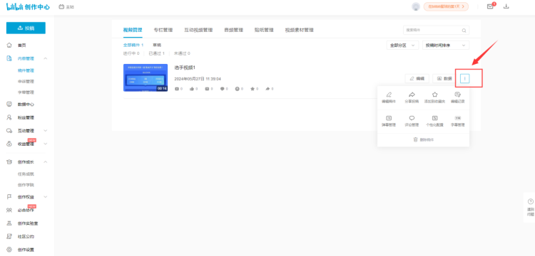 在已通过审核的视频右侧,点击三个小点