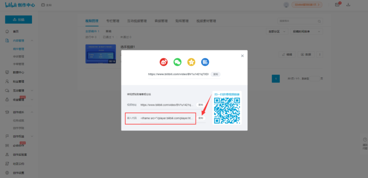 再点击右侧的【视频通用代码】