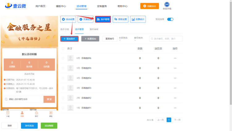 在【选手管理】中,点击【添加选手】